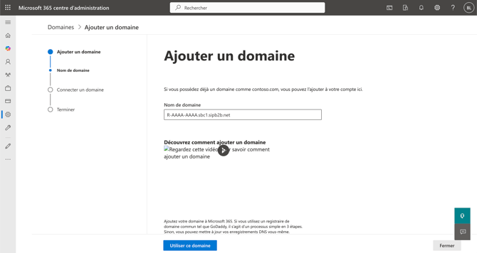 une fois le nom de domaine saisie, cliquez sur Utiliser ce domaine