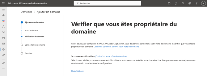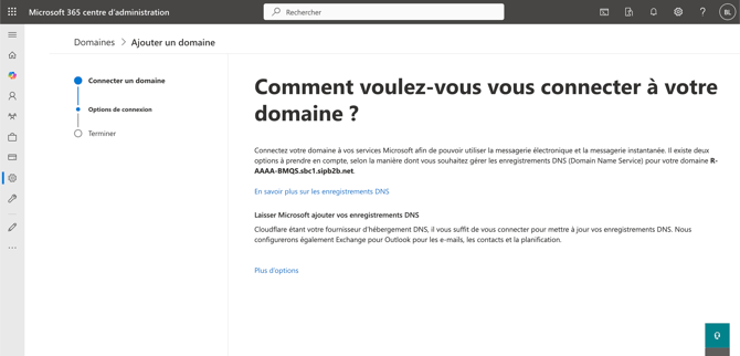 Dans la page suivante, cliquez sur Plus d'options puis sélectionner Ajouter un enregistrement TXT aux enregistrements DNS du domaine.