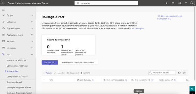 Pour la suite, RDV dans la page de l'administration Teams puis dans le menu Voix > Routage Direct